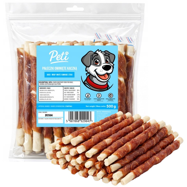 Peti Pałeczki Owinięte Kaczką 500 g – mięsny gryzak dla psa