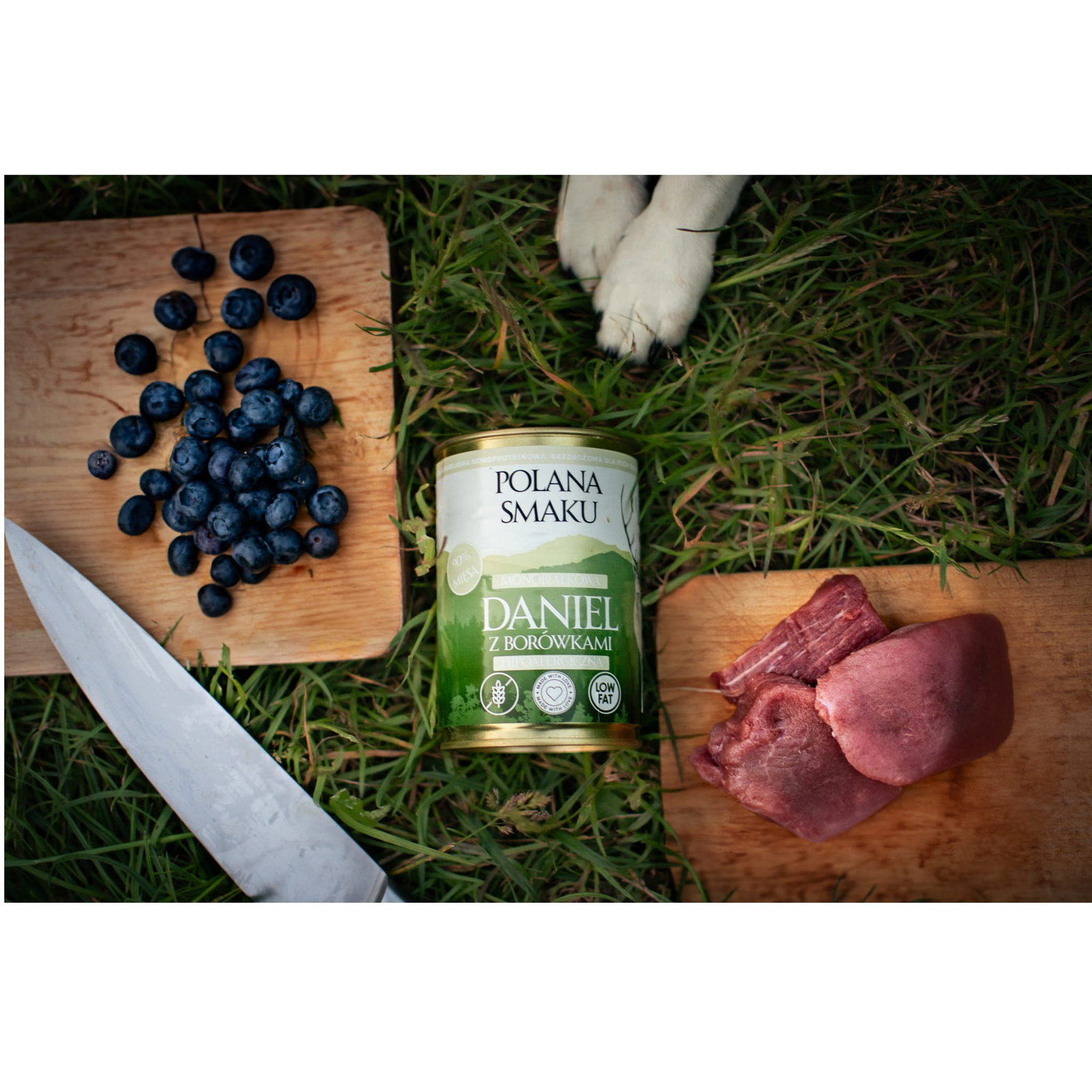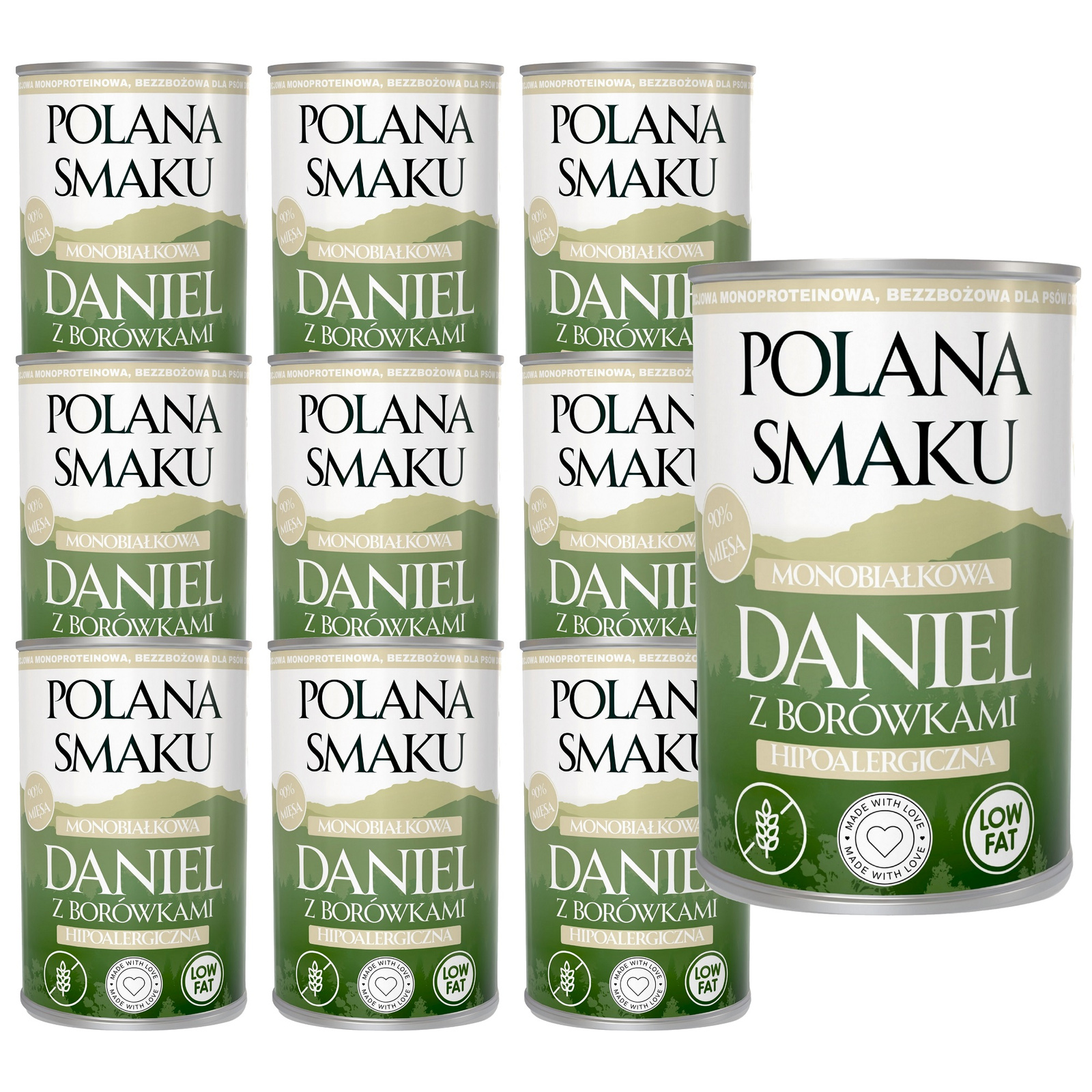 Zestaw Polana Smaku - Daniel z borówkami, niskotłuszczowa i delikatna karma dla wrażliwych psów, 10x400g