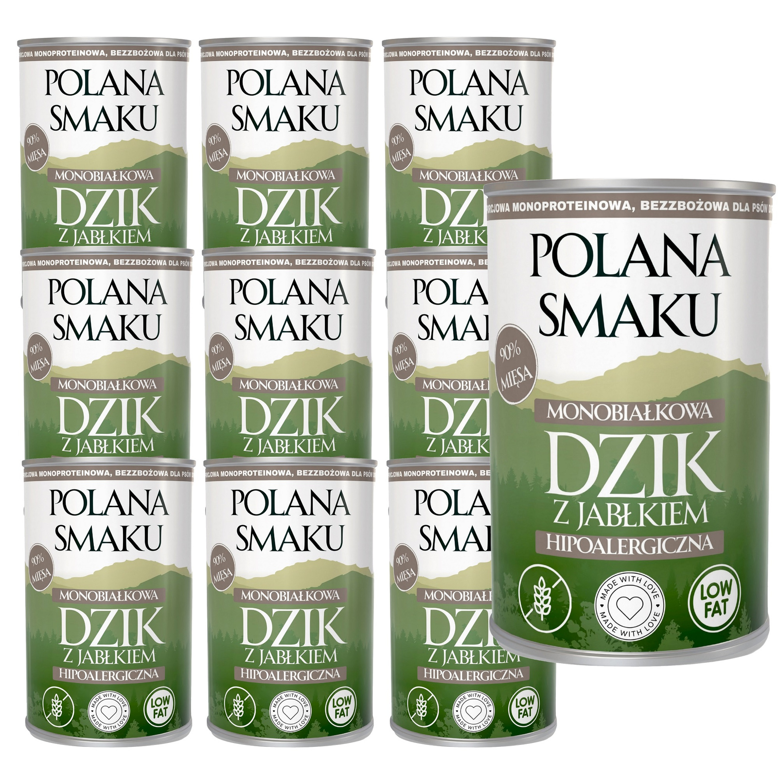 Zestaw Polana Smaku - Dzik z jabłkiem, delikatna karma dla wrażliwych psów, 10x400g