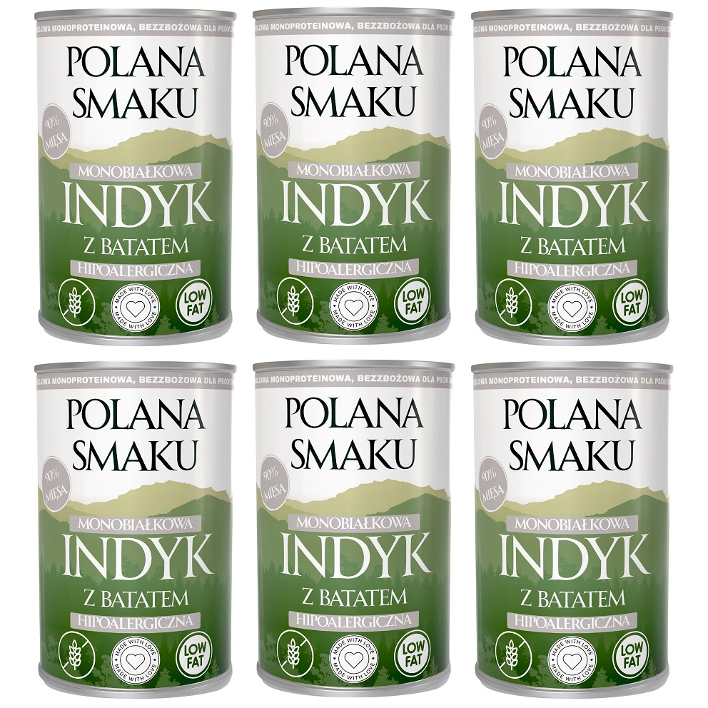 Zestaw Polana Smaku - Indyk z batatem, niskotłuszczowa karma dla wrażliwych psów, 6x400g