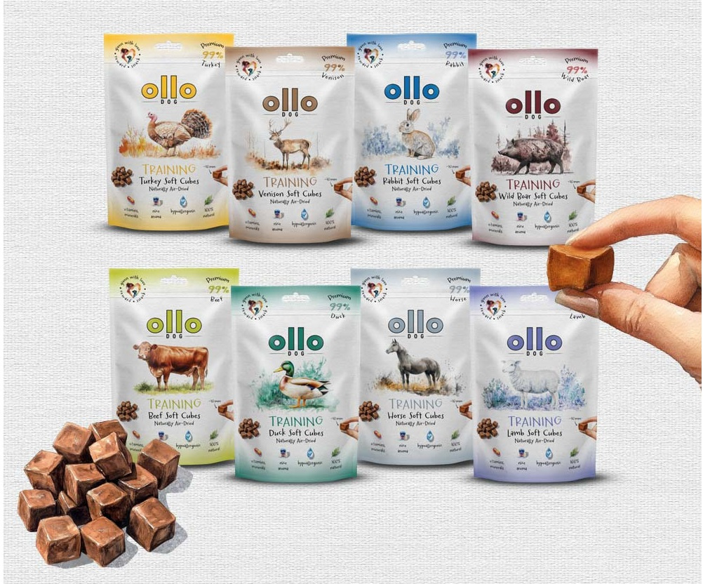 Przysmaki treningowe dla psa Ollo Air-Dried Training Soft Cubes to naturalne, hipoalergiczne, monobiałkowe smaczki – idealne na trening lub szkolenie! Nagradzaj swojego psa zdrowo, a jedocześnie smacznie i dbaj o jego dobre samopoczucie.