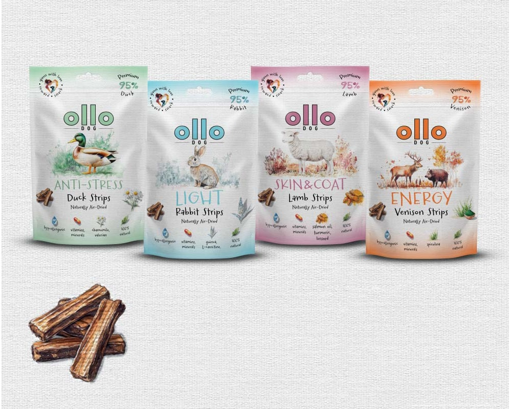 Przysmaki funkcyjne dla psa Ollo Air-Dried Light Rabbit Strips to pyszne, niskotłuszczowe, hipoalergiczne smaczki dla psa z królika. Są monobiałkowe, hipoalergiczne, lekkostrawne i w 100% naturalne. Pomogą Ci zbudować więź ze swoim pupilem. Do składu dodano Quinoę białą, która pomoże w utrzymaniu prawidłowej wagi Twojego psa, a L-karnityna przyspieszy spalanie tłuszczu. Podawaj je, gdy Twój pies ma nadwagę lub dbasz o jego linię. Dbaj o idealną wagę i zdrową sylwetkę swojego psa! Ollo Air-Dried Light Rabbit Strips są delikatnie suszone powietrzem, dzięki czemu zachowują wszystkie wartości. Bez konserwantów i sztucznych dodatków. Są także miękkie, więc łatwo je podzielisz na mniejsze kawałki.