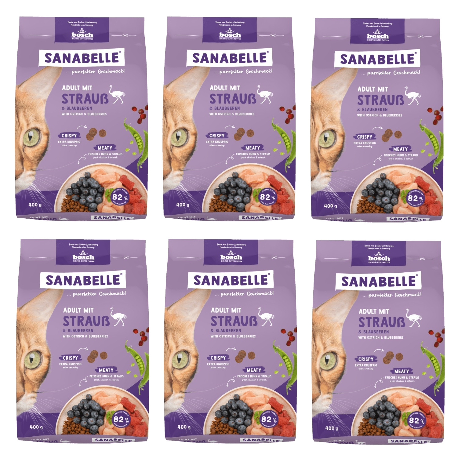 Bosch Sanabelle ADULT Ostrich, sucha karma dla dorosłych kotów, Struś, 6 opakowań po 400g