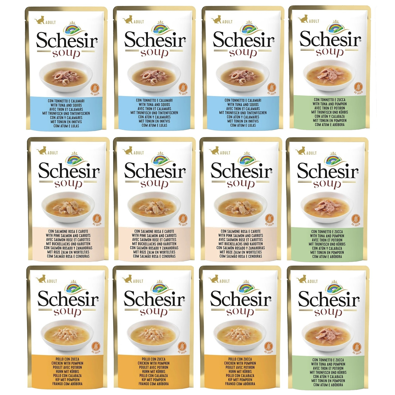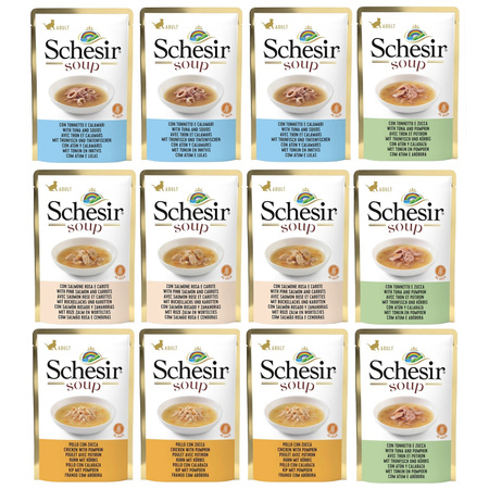 SCHESIR SOUP MOKRA KARMA DLA KOTÓW ZUPA KOTA MIX SMAKÓW SASZETKA 12x85g