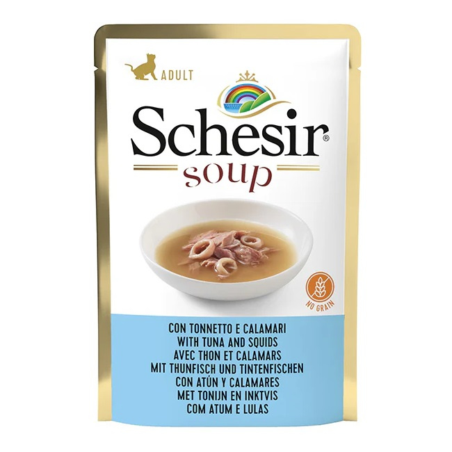 Karma w postaci zupy dla kotów, które uwielbiają mokrą karmę Schesir, a zwłaszcza jej bardziej płynne odmiany. Świetnie smakuje sama jako samodzielna porcja, a także doskonale nadaje się do podawania w połączeniu z karmą suchą dla uzyskania dodatkowego smaku.