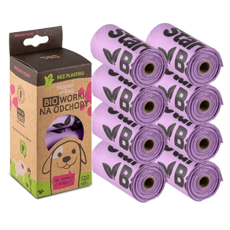 StarchBag WORKI NA ODCHODY PSA PSIE KUPY BIODEGRADOWALNE LILIOWE 21x32cm 120szt 8x15szt