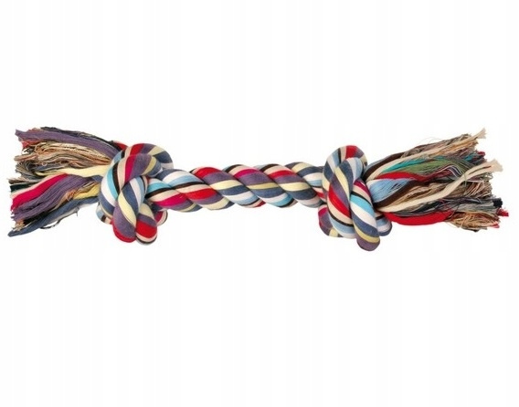 Kolorowy sznur bawełniany - wspaniała zabawka dla psa średniej lub dużej rasy. Zabawa sznurem wspomaga utrzymanie higieny zębów - dzięki włóknom pies czyści zęby i masuje dziąsła. Sznur posiada również węzły, co przysparza dodatkowej frajdy. Możesz również bawić się w przeciąganie i szarpanie ze swoim psiakiem.