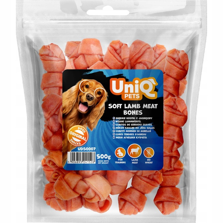 UNIQ PETS MIĘKKIE KOSTKI WĘZEŁKI Z JAGNIĘCINY MIĘSNY PRZYSMAK DLA PSA 500g