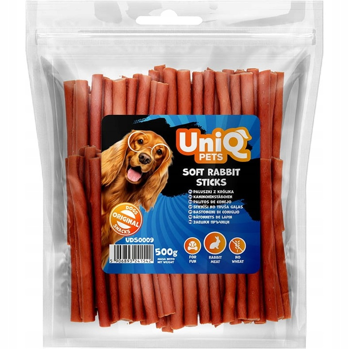 Uniq Pets, Miękkie Paluszki z Królika, mięsne przysmaki dla psa, 500g