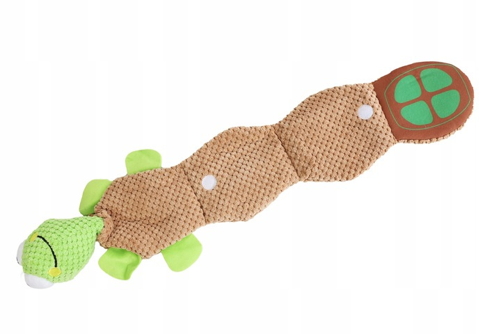 Żółw z piszczałką to doskonała zabawka dla psów pełnych energii, które uwielbiają wszelkiej maści pluszaki. Zabawka jest łatwa do chwytania i umożliwia aktywną zabawę. Żółw jest trwały, wykonany z wysokiej jakości materiałów, które zapewniają długotrwałe użytkowanie. Wbudowana piszczałka sprawi, że każdy ruch zabawki wywoła radość i ekscytację u Twojego czworonoga, zachęcając go do zabawy.