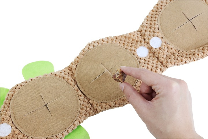 Specjalne nacięcie w zabawce umozliwia ukrycie w niej smakołyków, co sprawi, że wspólna zabawa z psiakiem będzie jeszcze bardziej ciekawa i ekscytująca.