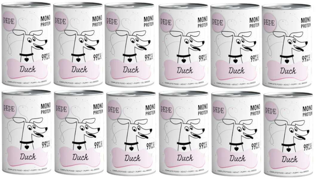 Zestaw zawiera 12 puszek karmy PAKA ZWIERZAKA PEPE DUCK KACZKA 400g.