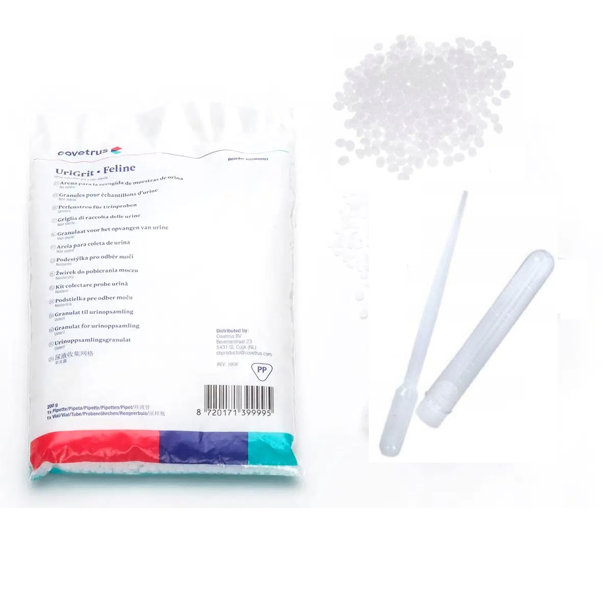 ZESTAW ŻWIREK I PIPETA DO POBIERANIA PRÓBKI MOCZU KOTA DO BADANIA COVERTUS UriGrit 200g